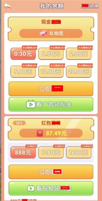 1、通过简单的合成玩法来领取红包奖励,合成的等级越高,数额越久越大。