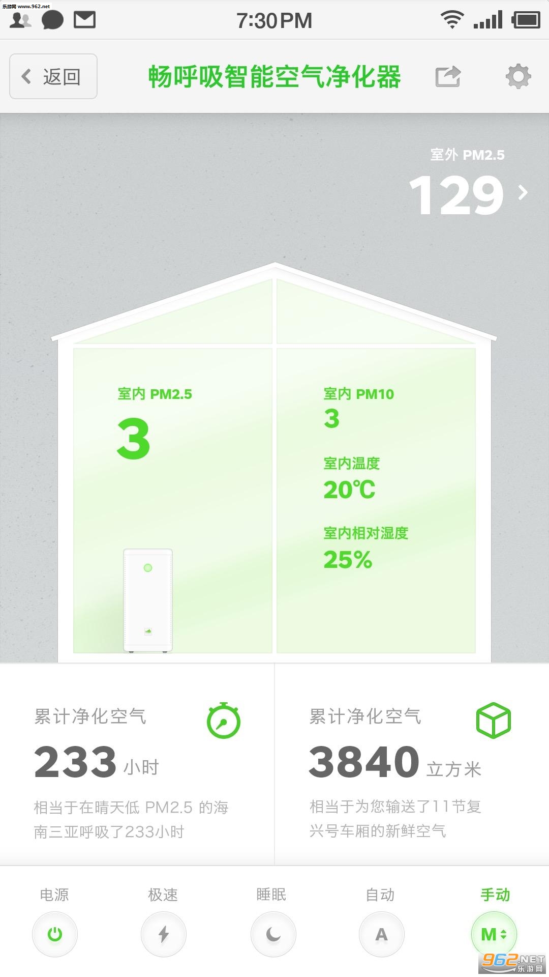 使用“畅呼吸”可远程控制畅呼吸智能空气净化器,同时可查看室内的 PM2.5 指数、PM10 指数、温度、湿度及室外的空气质量预报,让你对室内外的空气质量对比了如指掌,时刻呵护您和家人的健康。