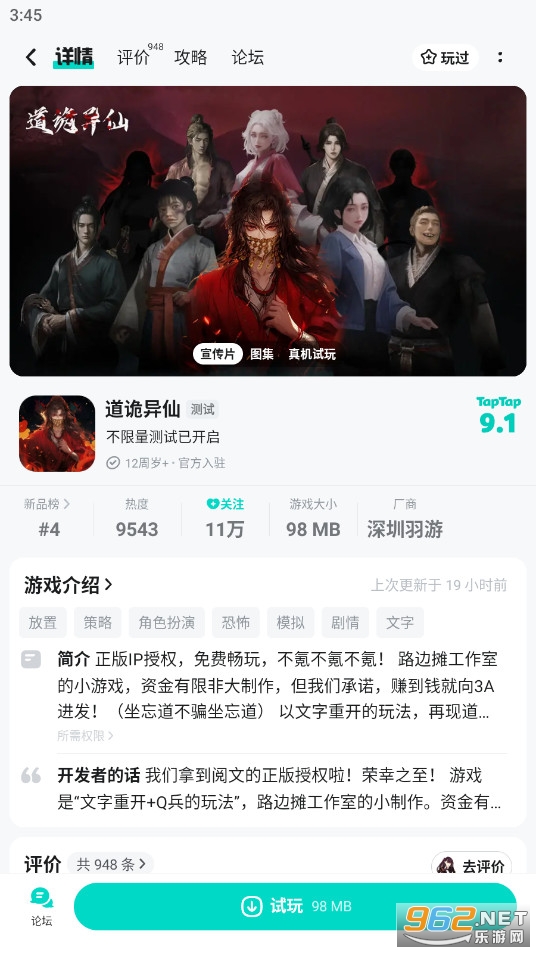 TapTap是易玩(上海)网络科技有限公司开发的游戏社区(第三方游戏下载应用平台),TapTap不做联运和分成,为用户提供了便捷地发现游戏、购买以及安装游戏到智能手机的渠道。