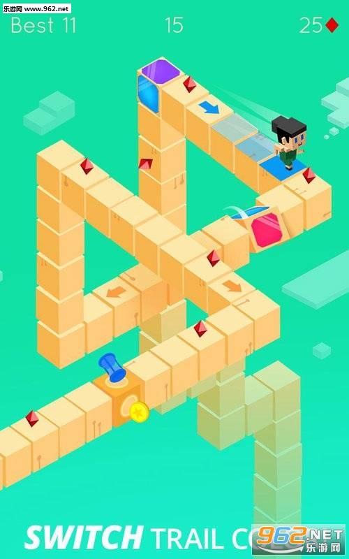 在3D平台上跑动时通过触击以旋转方块的颜色,把方块颜色与跑道颜色进行匹配。