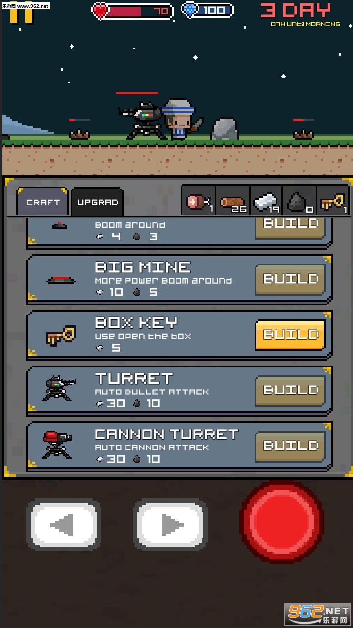 在《像素生存者3》这款游戏中,玩家将在荒岛世界里进行探索,收集各种材料与资源,建造基地,制作各种工作台、功能建筑、打造装备武器。同时每当夜晚来临的时候,就会有很多怪物出现,例如海盗、幽灵等。它们会自动的攻击我们,而我们不可能一味的逃避,是重要与之进行战斗,所以在装备武器上就更需要大家去想办法获得了。游戏在内容上有些类似于“饥荒”,我们在提升自己能力的时候,还要时刻注意自己的血量、饥饿程度等。游戏模拟了真实的冒险环境,给玩家们提供了数百种不同的材料装扮制作合成方式,额外增加了血量和饥饿值,让玩家们的挑战变得更加艰难,当然也增加了游戏的可玩性。最后,像素生存者3拥有玩家组队模式,在未来的生存中,我们可以与自己的好友一起组队,这样就大大提升游戏中的存活几率,也提升了玩家之间的互动效果。