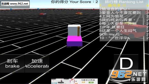 操作简单,刹车就是刹车,加速就是油门,D/R就是换挡,然后就是使劲撞吧!!!注意会有属性提升的补给包哦,可以提升速度或变得无敌!!!