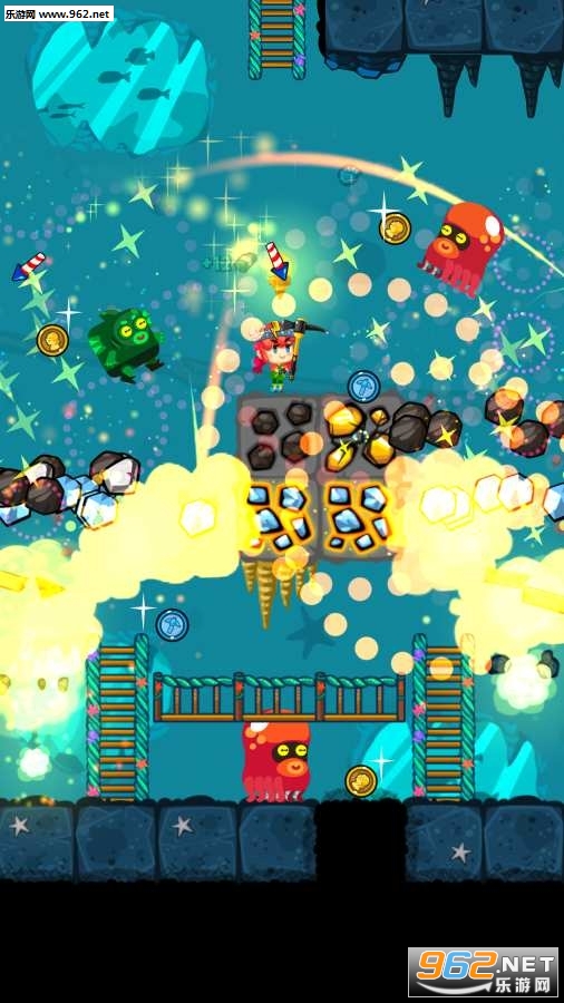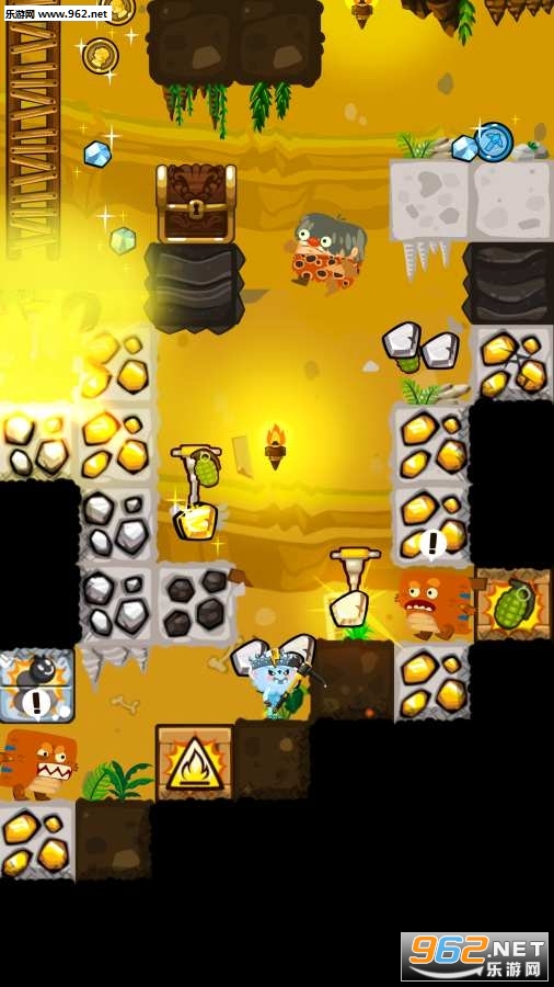 如果挖到了炸药,那么它就会帮助我们炸掉周围的土块,如果挖到了电钻,那么它会向下挖掘,帮我们自动钻开地底的土块。