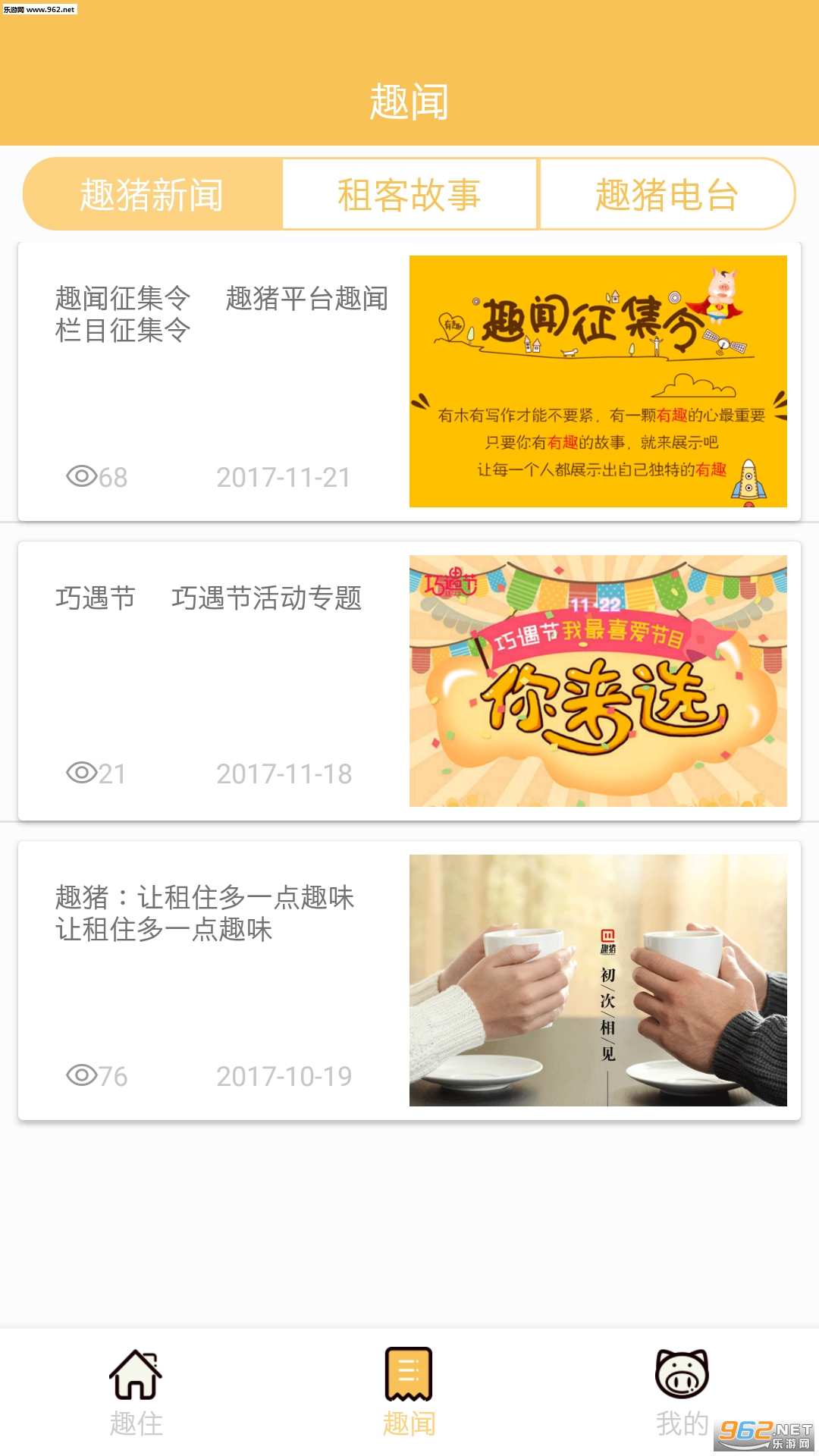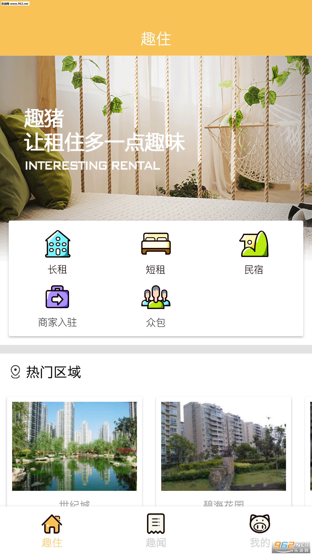 都说 “买房不如租房”,趣猪为您提供优质真实的租住信息,涵盖长租、短租、民宿等各种租住类型服务。只要是“租”,来趣猪,总能找到您想要的。您可以在线选房、自助看房、在线签约、在线交租、租金月付,还可以一键智能查看信息。真房源、零佣金,智慧租房。趣猪或许可以给您带来一个温馨的家,或者让您结识一个志同道合的朋友,充分感受住宿之美,人情之暖。