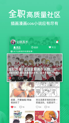 1.纯净的高质量全职高手粉丝社区「漫画、插画、cos、游戏」