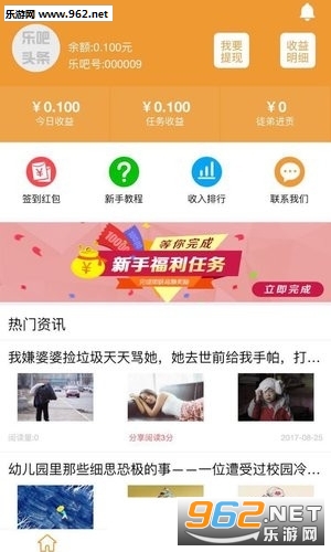 登录乐吧头条App完成新手福利任务,可以获得现金奖励