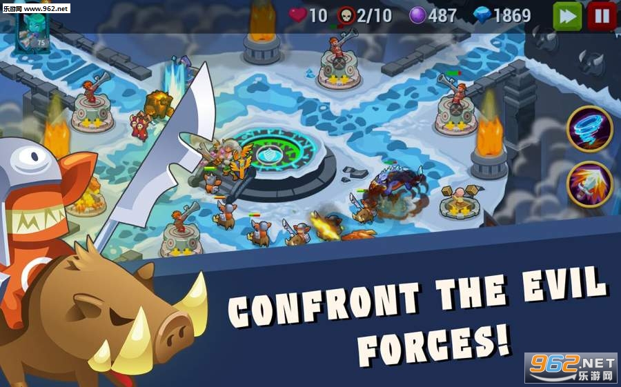 使用各种各样的力量和能力打败一波又一波的威胁,游戏有30多个关卡,取得全部关卡胜利并解锁秘密政权。通过精灵巨人树林,广阔骨之谷,郁郁葱葱的雪山谷,石塔天空寺和实时魔法森林,面对一波波残酷敌军,投掷者元素地精,巡航骷髅,巨兽和更多敌人。