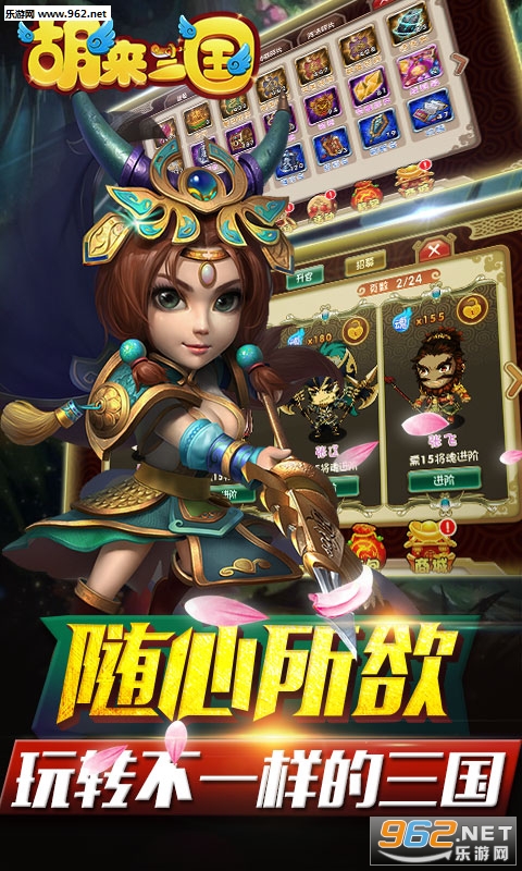 三国基因变变变!一场萌傻二呆的第二代卡牌挂机游戏,掌上《胡来三国》震撼来袭!丰富的人物属性、热血的打斗挂机、多样的武将缘分,自由的培养方式,搭配令人心痒痒的弹幕吐槽,带给您不一样的乐趣。耕田用赤兔,砍柴用画戟,女佣是貂蝉,马夫用孙权……《胡来三国》作为一款第二代卡牌挂机类游戏,轻松不累,好玩不贵,史上最放心的休闲卡牌游戏!