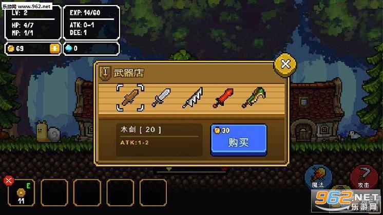 攻击:点击攻击按钮就会有效攻击1次。(路上会有可以打碎的罐子,里面可能会有金币哦!)。