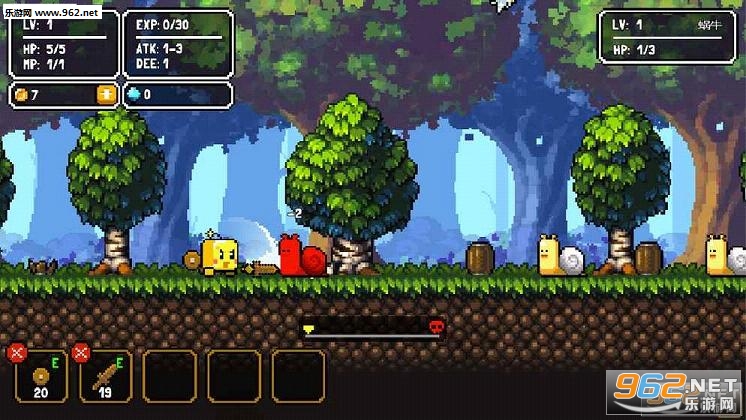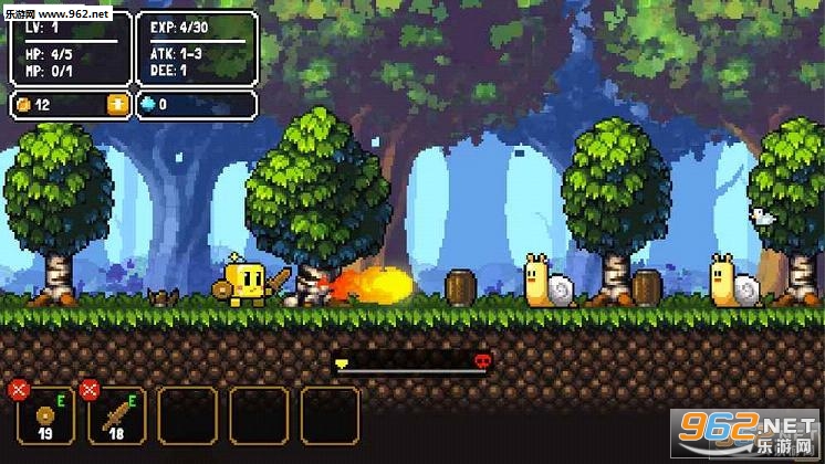 每次开始关卡时,角色都会从头开始(等级保留)初始玩家会带有木剑、木盾和一小桶泡面。好好利用这些道具是初期的生存之道。打倒怪物会掉落金币和经验,积累经验等级会提升,主角的各项属性也会提升。