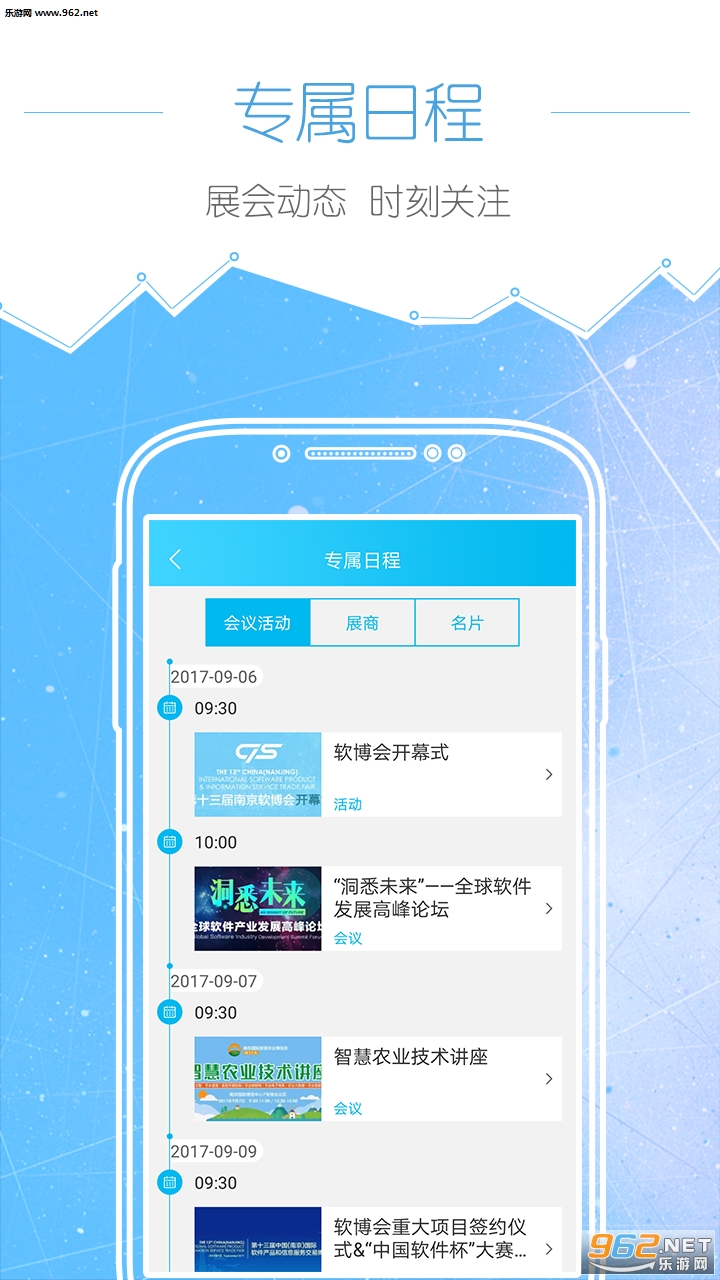 通过“掌上软博会”app,不仅可以及时获悉展会期间各项活动的具体时间、地点和主要内容,还可以在线注册生成电子门票,拿着手机就可入场。此外,app上还创新加入了私人行程定制、虚拟导览等功能,可依据参展人的喜好,量身定制展会参观行程,实现馆内导航等。