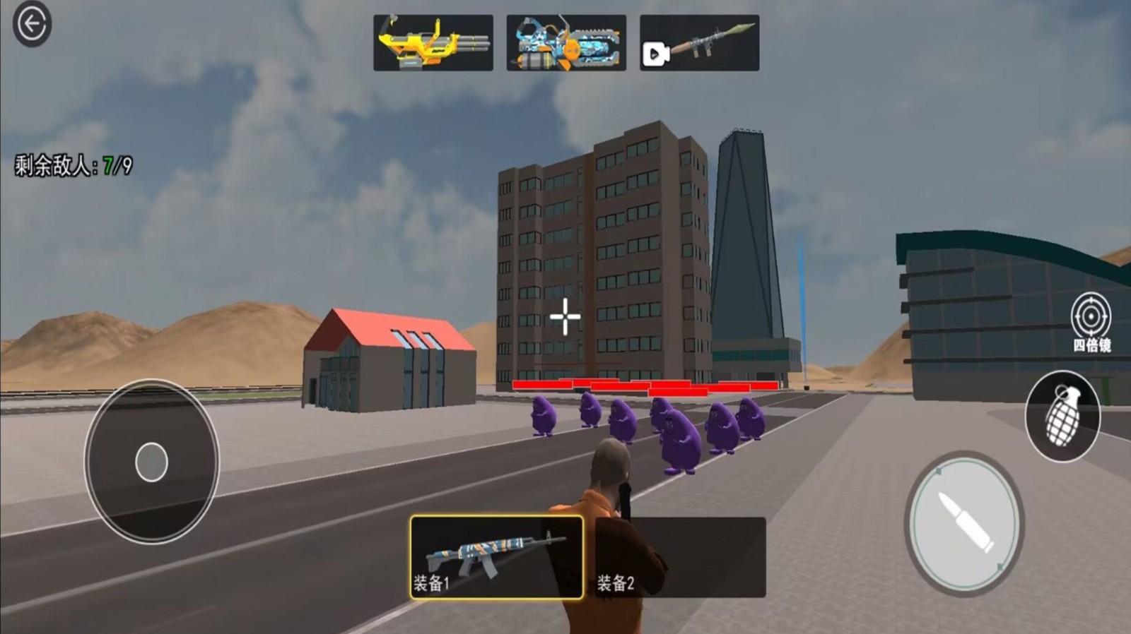 1、使用各种武器对付僵尸,不同的武器有不同的伤害和攻击速度,同时还可以使用道具来补充生命值和能量值;