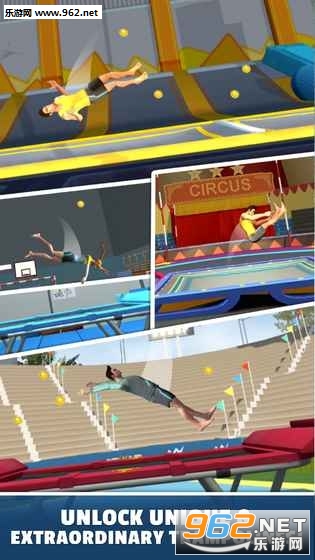 《翻转大师中文版》是一款蹦床挑战游戏,你将会在游戏中进行各种蹦床翻转动作,选择好你的位置就可以开始进行挑战了,可以让你玩一天都停不下来,不同的动作会有不同的分数,快来下载挑战吧!