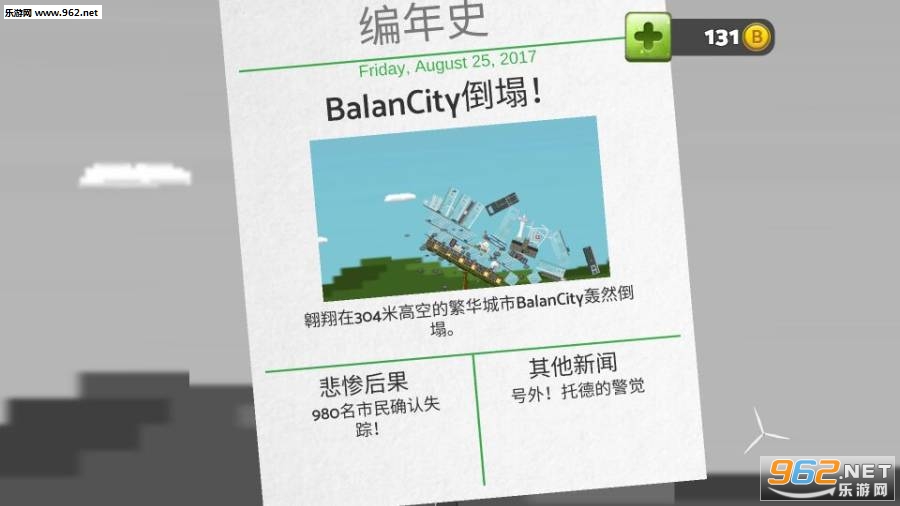 游戏高度的限制会根据你的级数递增,越高游戏的难度就越大,因为你不仅要做好人民的快乐度,还要保证那个跷跷板的稳定,否则一失足成千古恨。最好的方法是避免在极端方向建筑,尽量建造成一个三角形,底部要尽量大而重。