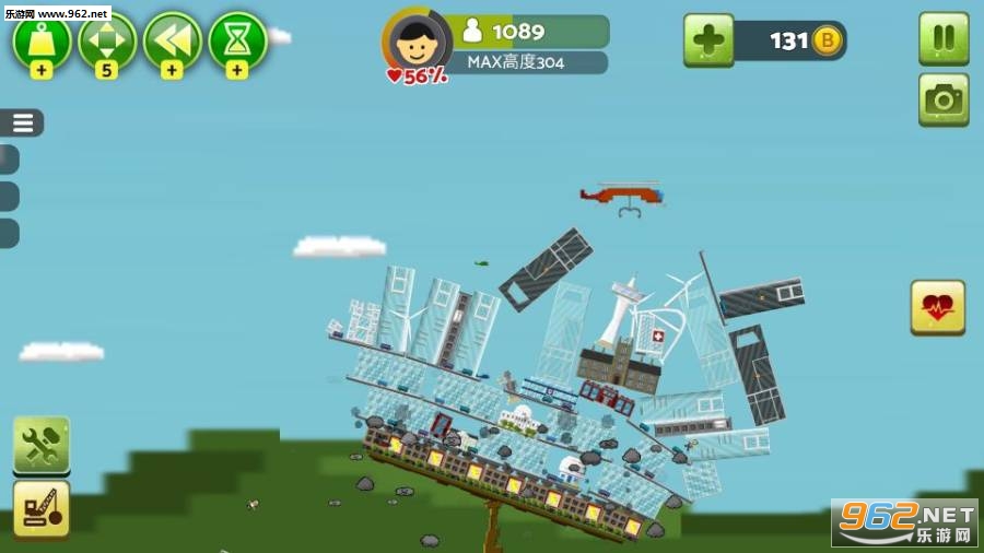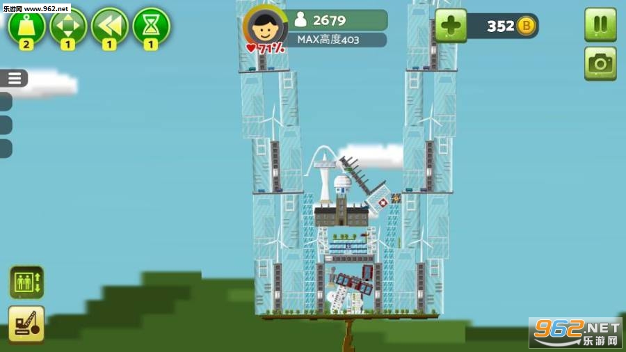 游戏的目的并不是往左右建造,而是越建越高,因为游戏中的地皮是一定的,唯一的发展空间也只是在上面。