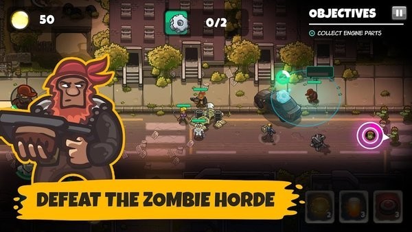 2、你可以寻找更多的幸存者来扩充你的队伍,让你可以更轻松的面对各种僵尸的攻击,非常有趣的游戏体验;