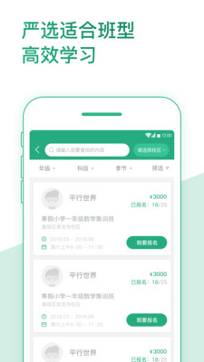 是一款和教务系统对接的手机客户端,包括家长端和教师端等。V1.0版本主要解决在线报名选课,满足转班、调课、续班等常用需求,并完成教务系统与手机端二者学员的数据关联。
