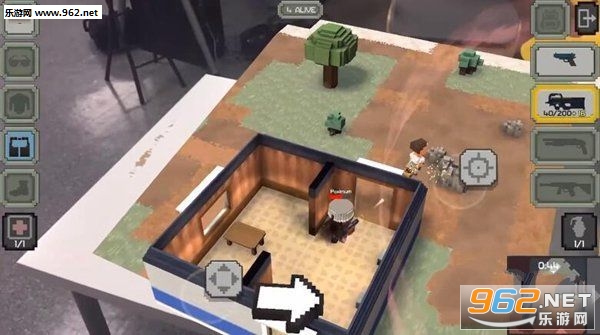 游戏是一款经典的像素风格的射击生存手游,玩家在游戏中需要收集道具和装备,选择不同的策略战胜所有的玩家,当然在装备落后的时候可以躲在草丛阴人