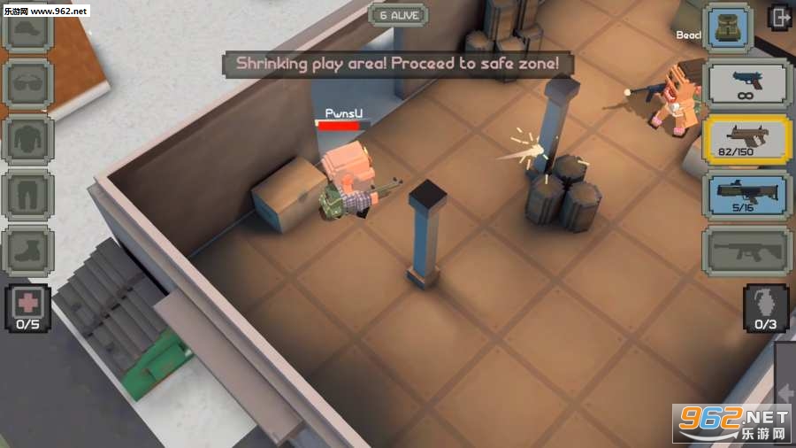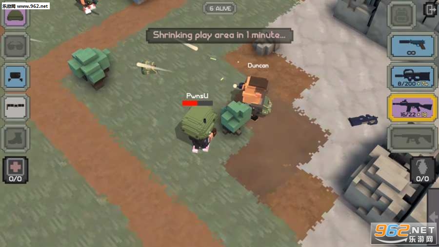 《皇家枪战:方形战场(Guns Royale: Blocky Battlegrounds)中文版》是一款上帝视角类的生存大逃杀类手游,玩家将在这里与真人玩家线上PK,争夺最终的胜利,活到最后将获得高额奖励,但是生存的考验与体验乐趣才是重点,在网络中风靡的大逃杀,你敢挑战吗?