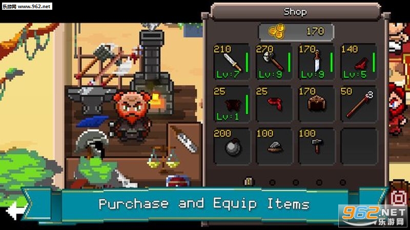 《角斗士的崛起安卓版》是一款回合制动作手游,游戏采用复古像素风格,带玩家回到90年的游戏记忆中。玩家可以通过消灭怪物获得金币,金币可以用来获得武器和装备从而强大自己的武力。还可以进入角斗场,和更强大的对手一决高下哦!