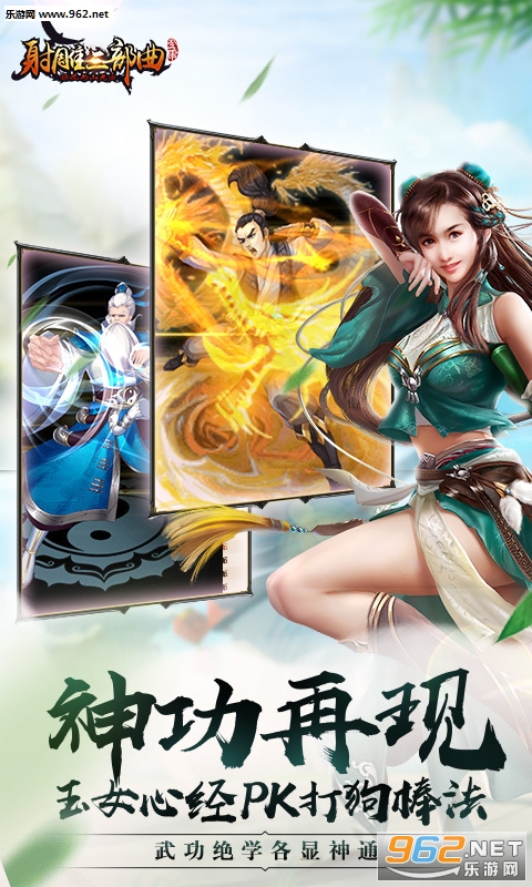 《射雕三部曲之杨过与小龙女》手游是根据当代著名作家金庸笔下《射雕英雄传》、《神雕侠侣》、《倚天屠龙记》三部武侠小说改编而来。游戏人物采用小说经典形象进行还原,玩家可以在游戏中搭配自己喜爱的大侠,通过情缘组合使用小说中著名的绝世武功,搭配组合数不胜数。高度还原了原著经典的剧情,更有创意PVP及组队玩法,带你寻找武侠中最真挚的爱恨情仇。