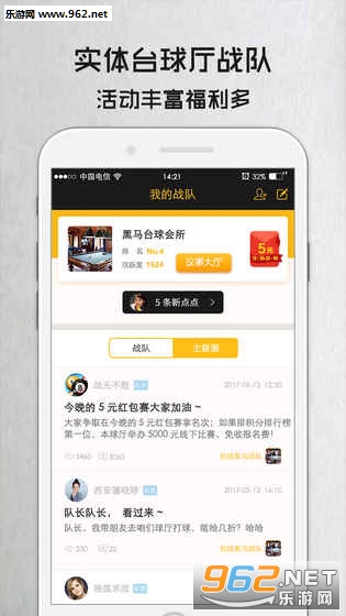 5.以实体台球厅为单位组建战队。您可与本队队员,或全国各地球友聊天、线上竞技、线下约球;并可参加球房或电竞台球组织的大型线下台球比赛;