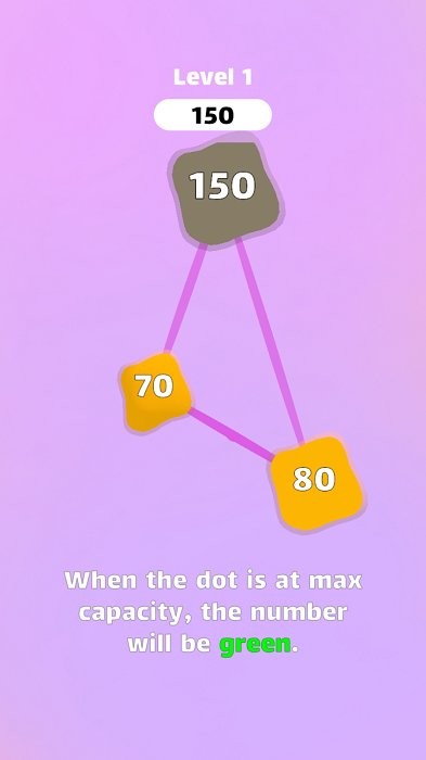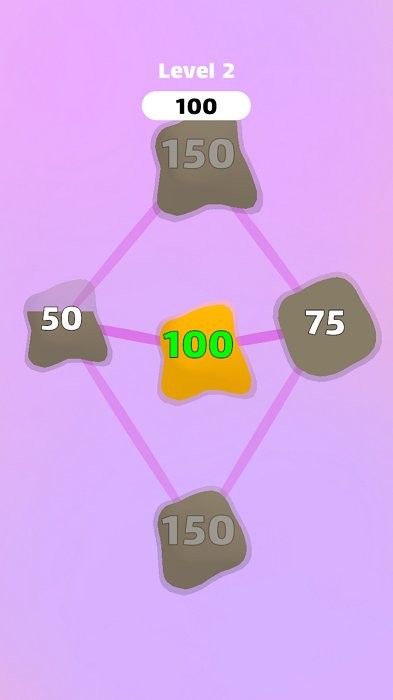 点击屏幕上发亮的果冻袋,就会一点点的增加果冻的数量,直到与某个灰色的果冻袋数字相同,击果冻袋将他们合成在一块,成为新的果冻,直到屏幕上的果冻袋都合并在一起才算闯关成功
