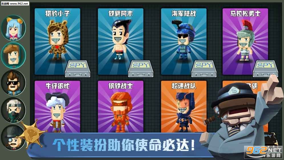 4、5名身怀绝技的特工可供选择,没有强弱只有技巧.技能和道具的完美结合,更有利于完成任务