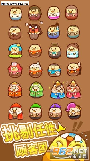 游戏中你需要协助餐厅中的服务生,服务好每一位来到餐厅的顾客。你还可以为小鸡们换上逗趣可爱的服饰,可以为餐厅招募各式各样的厨师,同时还有各种离奇搞怪的事件,不同风格的餐厅都会有不同的游戏任务。另外还有一些鬼畜的对话,无厘头的故事情节,整体非常欢乐。