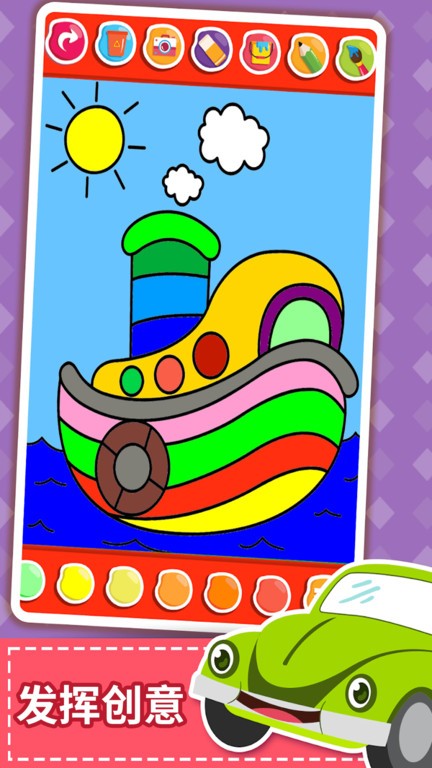 儿童汽车画画世界游戏是款儿童益智类的游戏.集合了儿童绘画与教育为一体的游戏还是比较少见的,儿童比较喜欢的汽车,潜水艇,卡车,飞机,消防车,跑车等一些元素游戏中都包含.色彩艳丽,看起来还是比较舒适的.