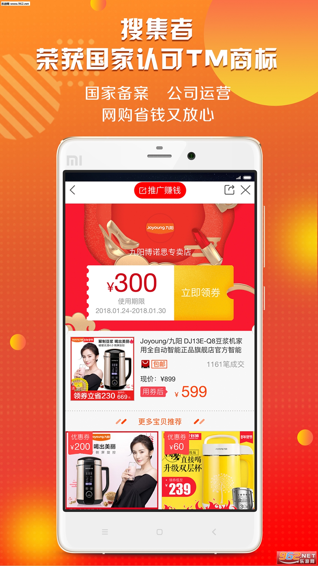 新人下载体验可领10元新年现金红包!搜集者已获得国家TM商标(星云网络旗下品牌)是一款淘宝天猫购物省钱又赚钱的APP,目前已过百万人下载!24小时实时搜集淘宝天猫折扣优惠券,购物先领券后下单最高可省98%,省钱赚钱如此简单!搜集、分享、快乐!