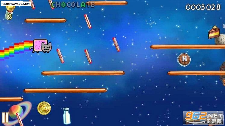 《彩虹猫:迷失太空》(Nyan Cat:Lost In Space)是一款休闲动作游戏。玩人类历史上最著名的“飞猫”。喝牛奶,吃冰淇淋,收集硬币,买华丽的助推器,像一个超级英雄一样飞行,跳到蛋糕的平台上,躲开愤怒的狗,并发现未知的空间。而这还不是全部,你可以选择多种游戏模式,在那里你可以学会飞翔在不同的行星或访问平行宇宙。游戏时一款横版躲避闯关类休闲游戏。玩家还记得从Niconico而来一首魔性歌曲《Nyan Cat》吗,歌曲即是从此游戏中传出。安卓版不仅修复了Bug,还带来了更多新鲜有趣的元素。游戏简单有趣,玩的时候强烈建议带着耳机玩!