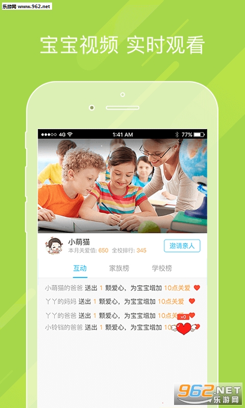 掌通家园连接家长和幼儿园,家长通过掌通家园随时获知幼儿园的最新动态,并有100%到位的通知,让家长不会遗漏一条重要消息;家长和教师进行一对一的交流,深入了解宝宝的在校情况;观看流畅清晰的实时视频,让家长关注宝宝成长的每一个瞬间;文字、照片、小视频,以丰富的形式记录宝宝的成长故事,打造一个以宝宝为核心的专属家庭圈。宝宝签到即刻提醒,严谨的宝宝代接流程,保证宝宝的在校安全;更有海量的优质教学资源,为家长的家庭教学提供权威多样的选择。真正的育儿好帮手。