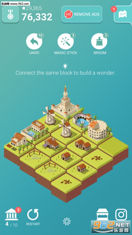 3、融合相同的方格,建造高级建筑,创造最伟大的文明。
