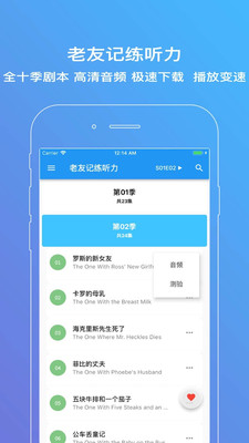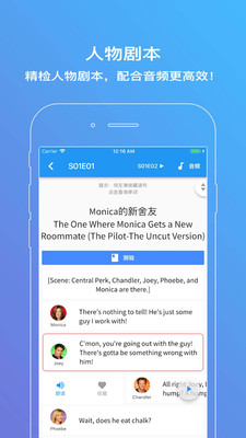 老友记练听力——英语听力口语地道学习APP。听力练习、人物对话、单词使用频率、中英文同步字幕、调节语速、点播、在线离线词典、收藏复习功能、精校全季剧本台词。学好英语!走遍天下都不怕!