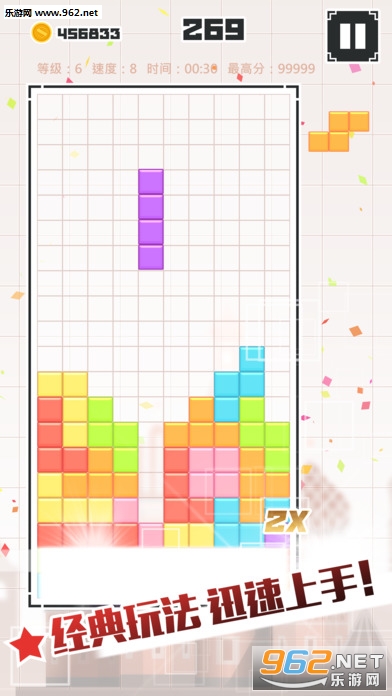 最熟悉的俄罗斯方块玩法:快速滑动屏幕,当前方块极速掉落。左右滑动,操纵当前方块左右移动;原地点击屏幕,当前方块变换角度。