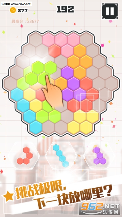 将不断备选冒出的方块任意摆放到大方格里,放下即可得分。你会获得儿时七巧板的乐趣!