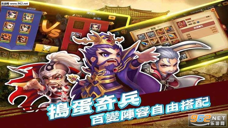 招募可爱搞怪的三国名将一同并肩作战!每一位武将都拥有独一无二的技能和天赋,两者结合塑造出一个个神通广大的勇猛武将!快来把这些强大可爱的三国名将收入囊中,一同征战天下吧!