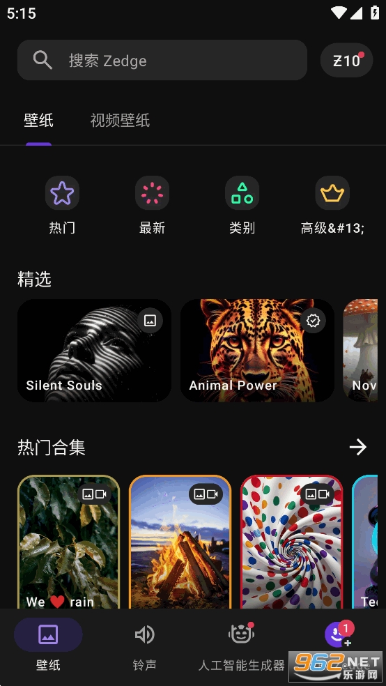 实用的手机壁纸软件,Zedge中有着丰富的静态壁纸、动态壁纸、视频壁纸和海量的铃声可以选择,一键设置即可,简单方便,你值得拥有。