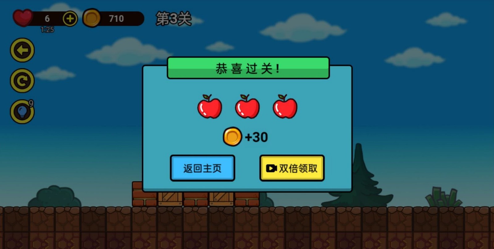 我能过几关是一款好玩的休闲闯关游戏,游戏里面的陷阱还是很多的,玩家要小心这里的障碍物,在规定的时间内吃到的苹果越多获得的分数也就越高,各种卡通风格的背景颜色能够带来良好的视觉感受,有兴趣的玩家快来试试吧!
