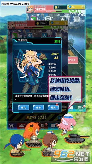 《坦克少女》是一款二次元美少女军事游戏。游戏中,多款坦克任玩家挑选,多个美少女陪伴玩家共同作战。