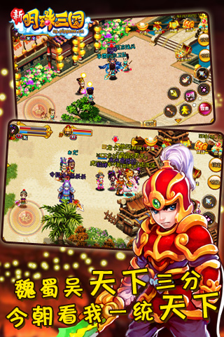 --清新亮丽的游戏画面,3D建模精致唯美的三国时代与十分Q萌可爱的三国英雄,还原三国经典战役以及三国着名英雄,丰富的关卡极具耐玩性;