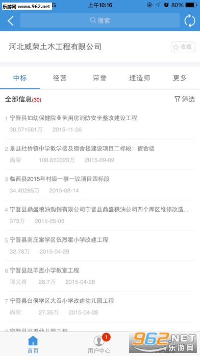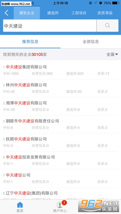 查询全国施工企业中标、建筑师在建、经营信息、荣誉与资质