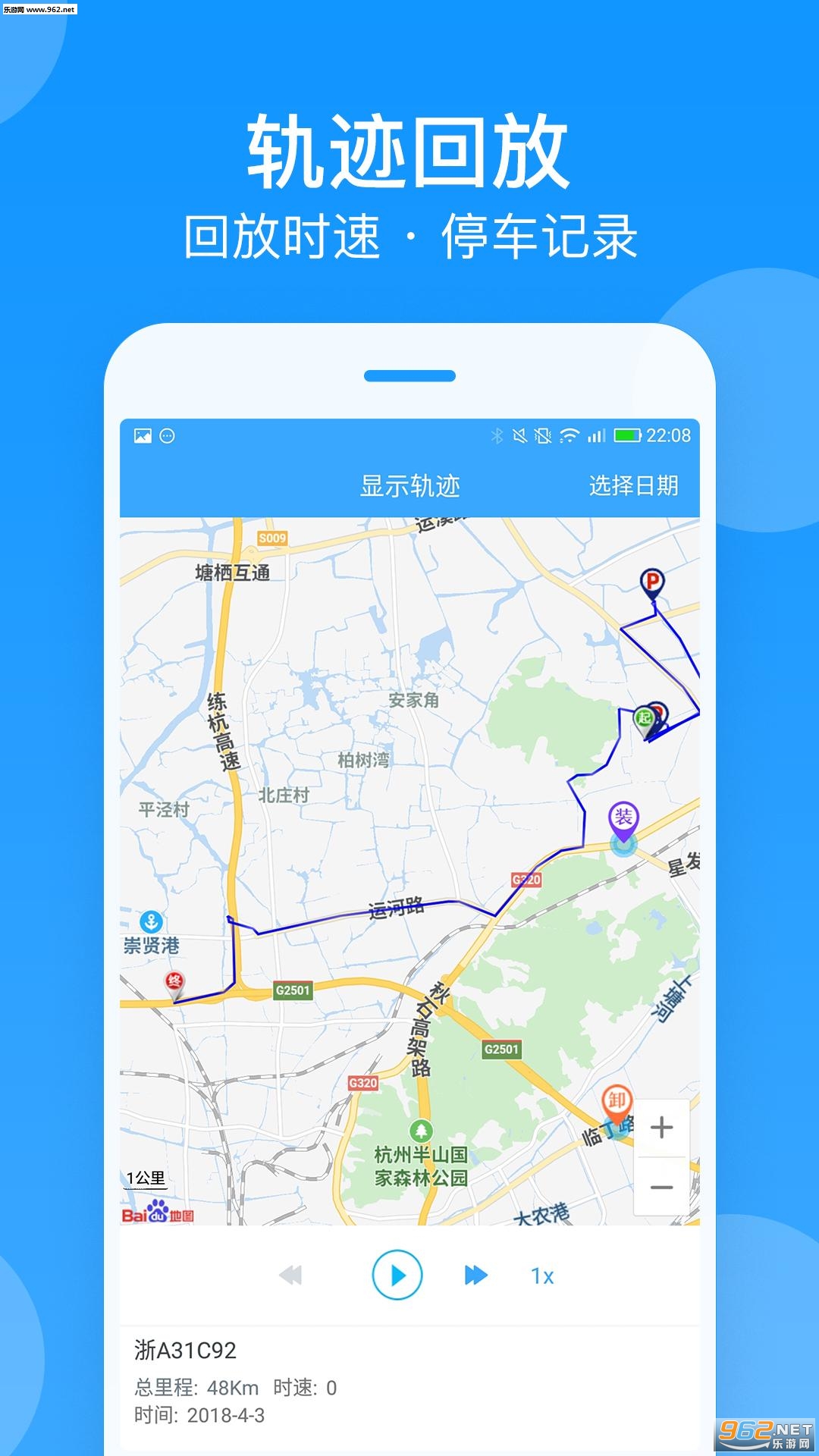 2.轨迹查询,可以按日期,时间段查询行程轨迹以及回放轨迹;