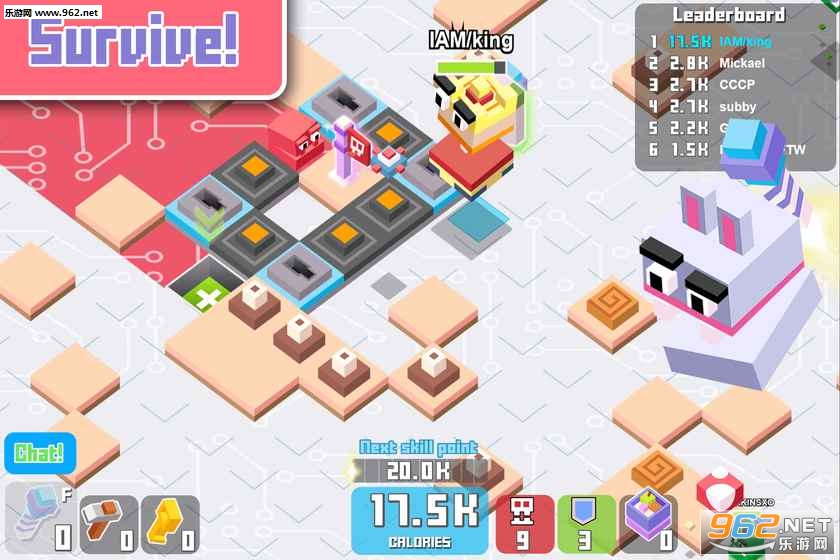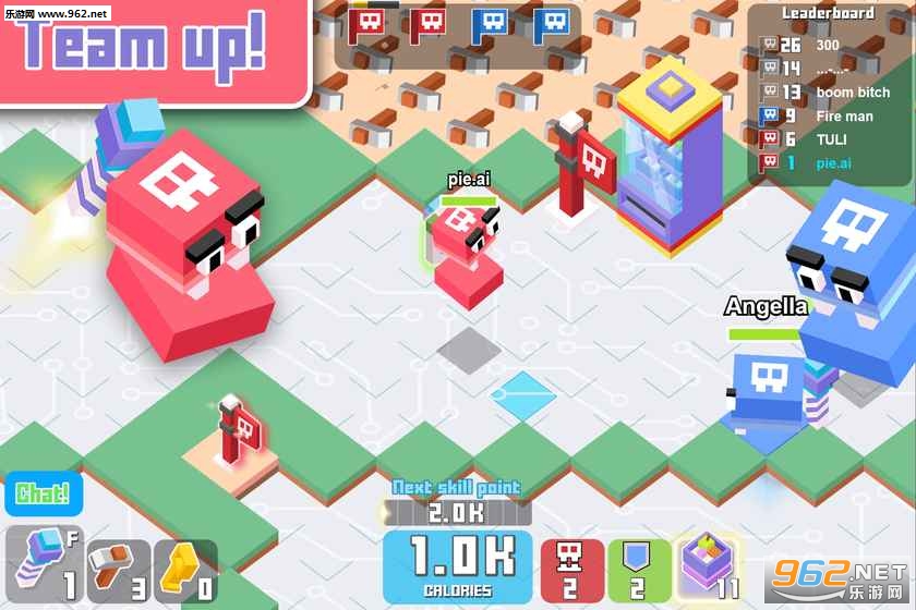 《跳跳大作战 pie.ai》是一款io类游戏。在游戏中吃各种各样的馅饼和其他玩家让自己变得越来越大,与世界各地的其他玩家一起在线竞技。游戏采用IO联网玩法,玩家将在这有限的方块世界中,争夺有限的资源,吃下沿途的糕点让自己变大,只有自己强大了才能欺负弱小的其他人哦,喜欢的朋友不妨来试试吧!
