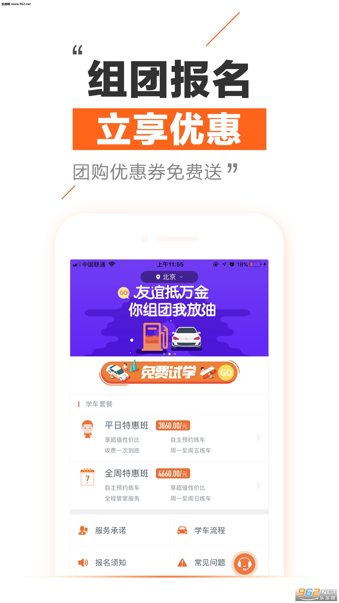 驾校:使用高效便捷的线上报名方式,节约管理及运营成本,提升驾校品牌知名度;