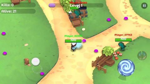 魔法大逃杀这款游戏中玩家可以与来自世界各地的玩家展开激烈的竞争,游戏中有强大的道具都分布在地图上,可以大大提高你和你的队伍之间的战斗和胜利。
