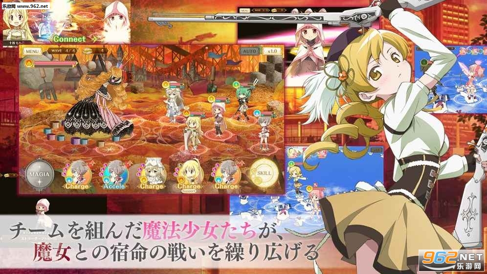 玩家需要上场五个魔法少女和一同和魔女战斗,场景敌我双方都是由3*3的格子组成,可以调整展未来组合不同的阵型获得不同的加成,由此看来战斗应该还是挺有策略感。