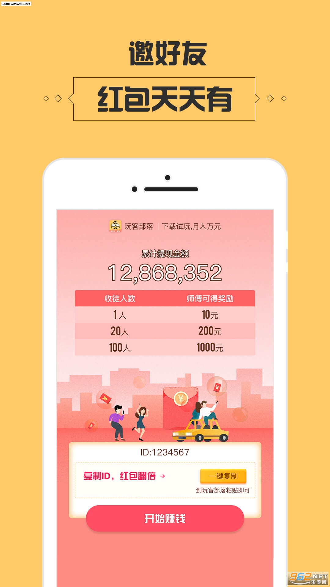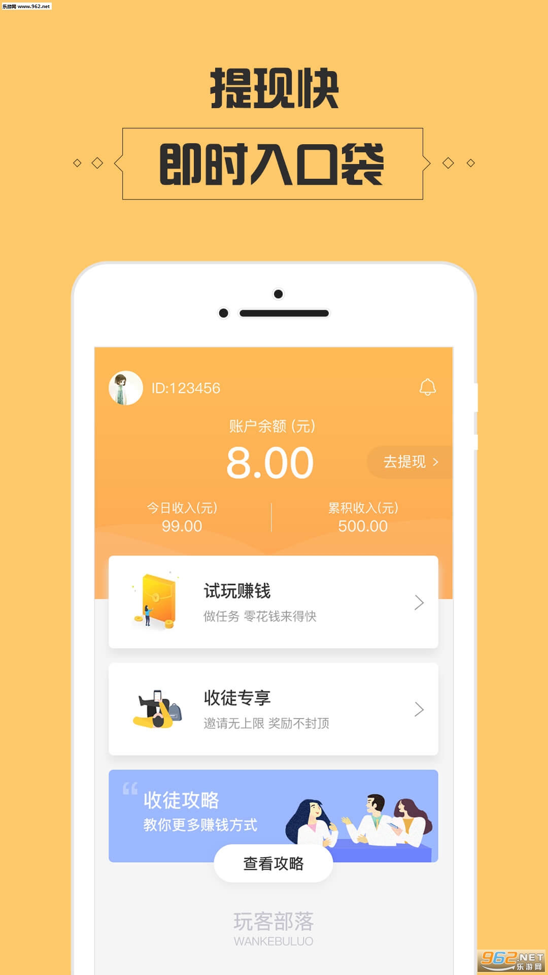 《玩客部落》是一款手机兼职类平台,能够让用户随时随地领取任务,完成任务赚钱,操作十分的简单,使用也相当的方便,还能邀好友获得分成,赶紧来下载吧!