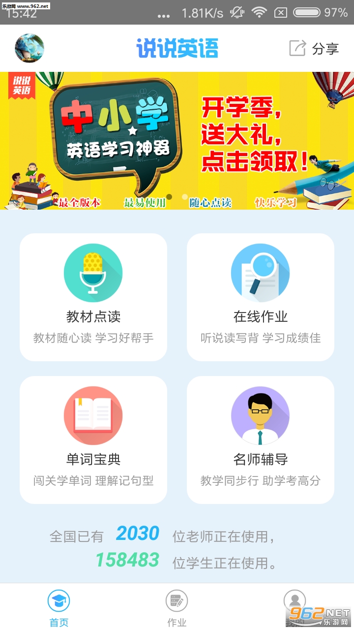 说说英语app是一款中小学生英语课本点读软件,包括了小学到初中所有的教材同步点读,课本单词点读,同时老师还能使用我们的app布置作业,是一款为中小学生提供在线作业的家庭英语辅导学习软件。
